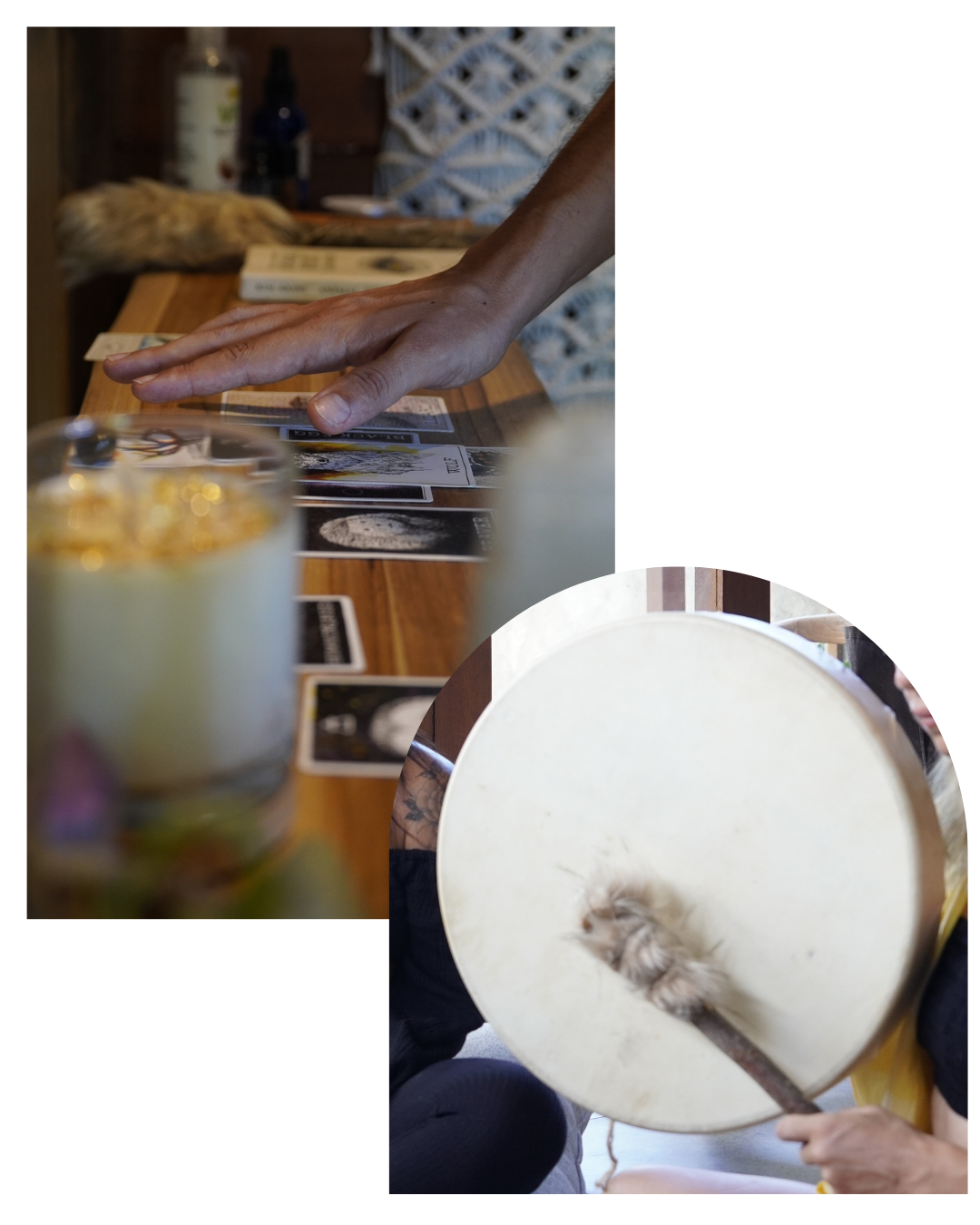 -Using Shamanic tools like drumming, rattling and sacred shamanic ceremony.